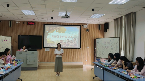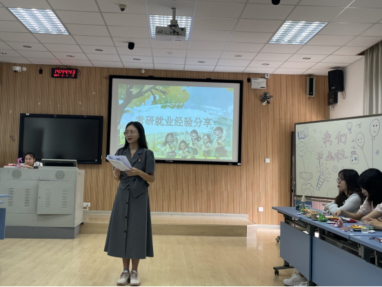 活动第一环节,首先由支部考研、选调生招考、教师招聘“上岸”的四位党员进行经验分享。研究生代表廖诗诗从自身考研经历出发,围绕专业和院校选择、复习计划制定、复习资料选择、心态调整等方面进行了分享。选调生代表黄慧荟就如何搜集信息选择适合小学教育专业报考的公务员或选调生岗位,以及结构化面试的形式、技巧和注意事项等进行了经验介绍。教师代表李丹梅和韦雀霖,分别从校园招聘会的优势、试讲与说课准备策略、教师招聘着装等方面谈了自己的招聘体验和感受。四位党员认真细致、干货满满的经验传授,让非毕业生党员们收获良多,对自己的职业规划和备考方向愈加清晰明确。