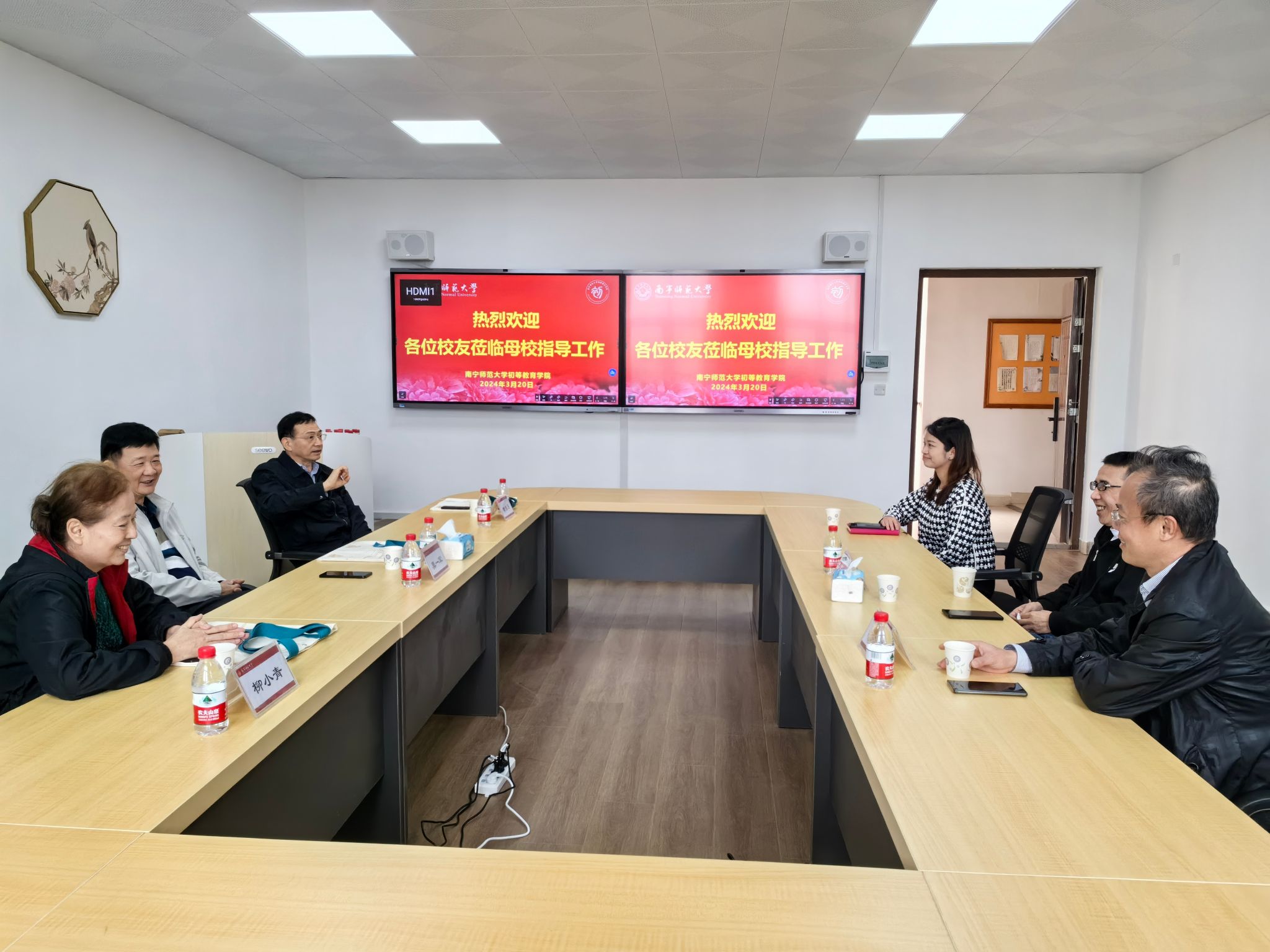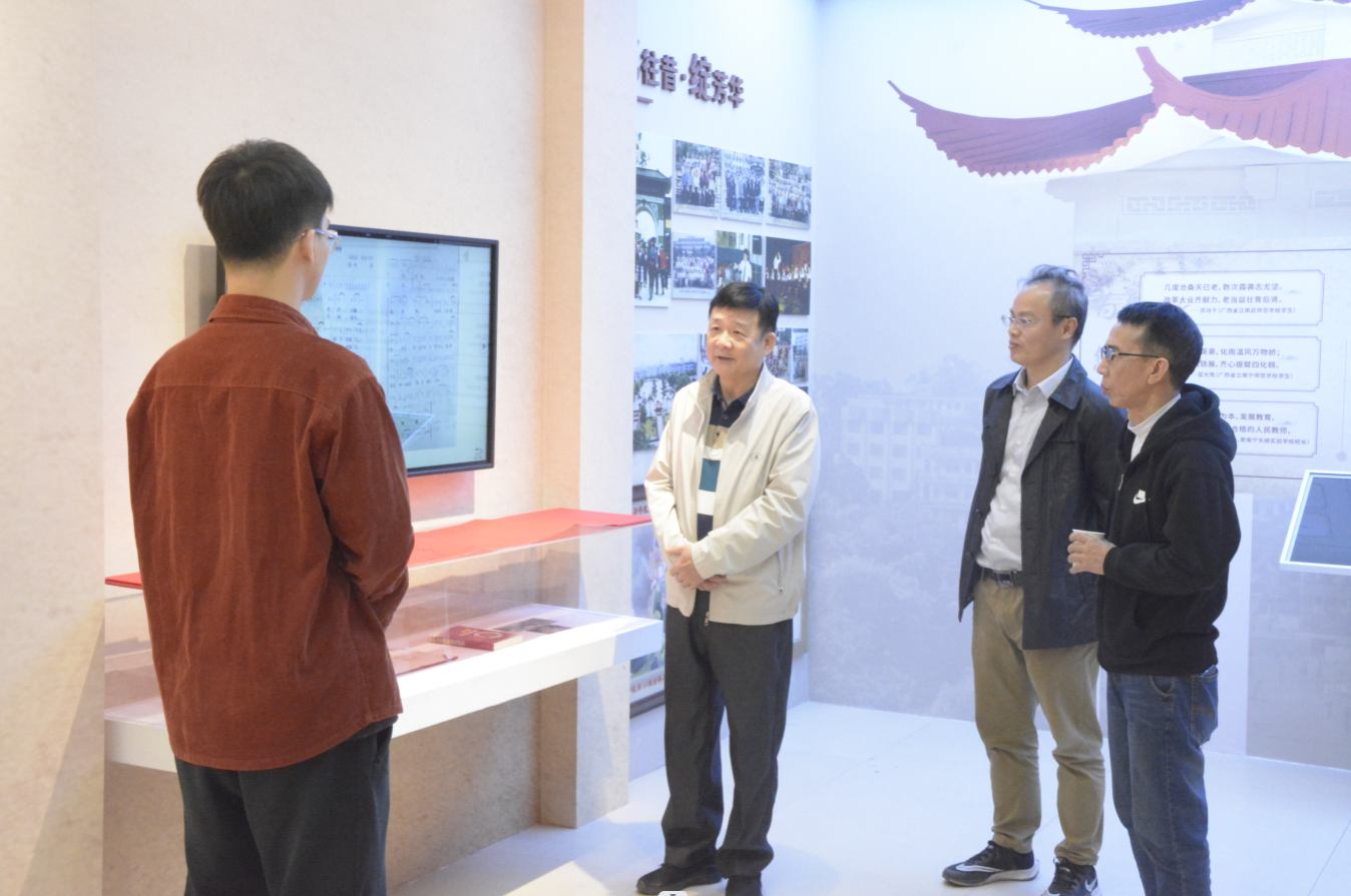 在五合校区理综楼716会议室召开校友座谈交流会。原南宁民族师范学校音乐教师、校歌作曲者莫一军,钢琴教师柳小青及1979级校友黄东日,华人色情