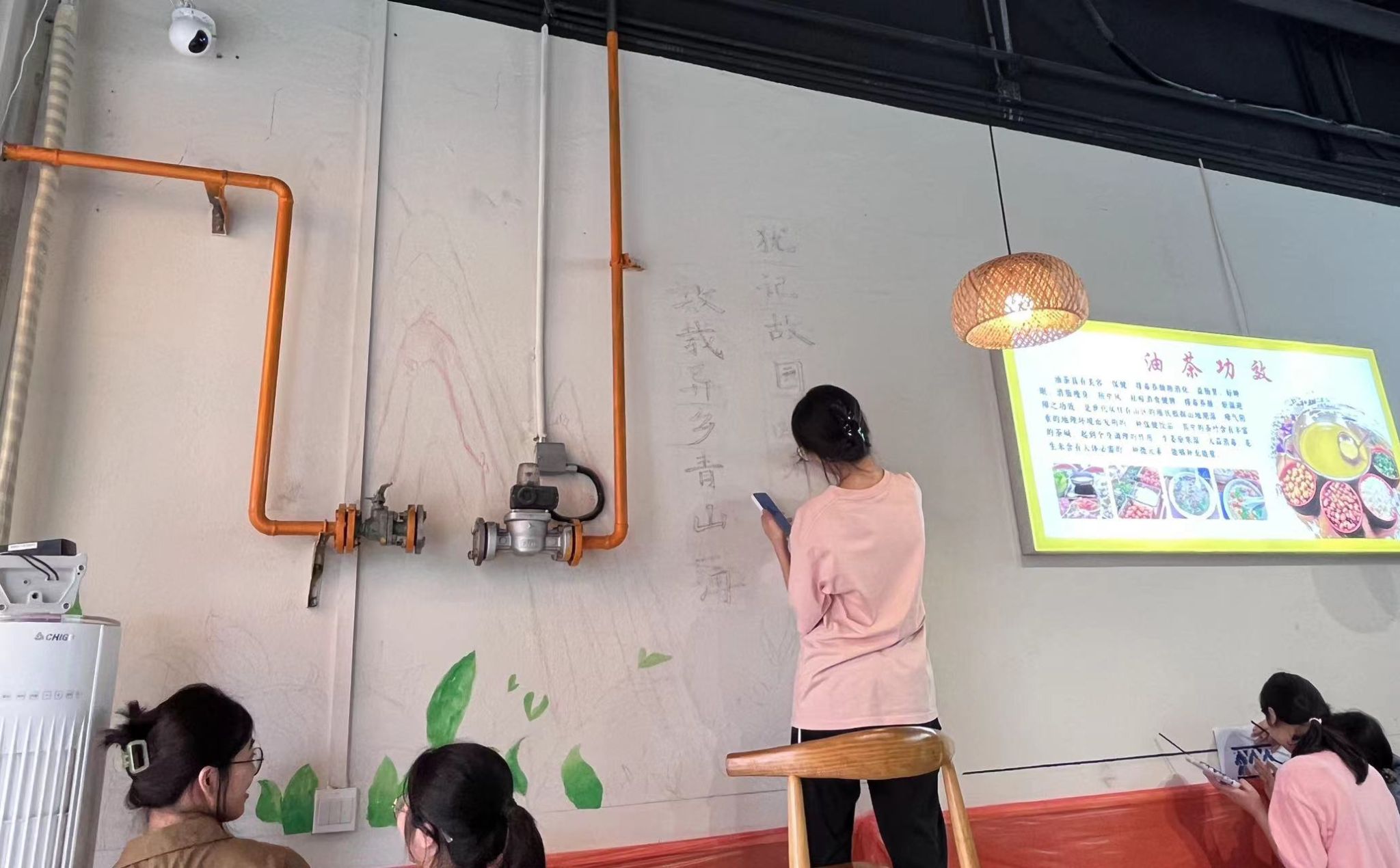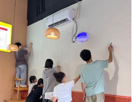 学生能力提升项目组成员到南宁市姐妹油茶店开展以“艺术视角下壮族文化的呈现与传承”为主题的墙绘活动。