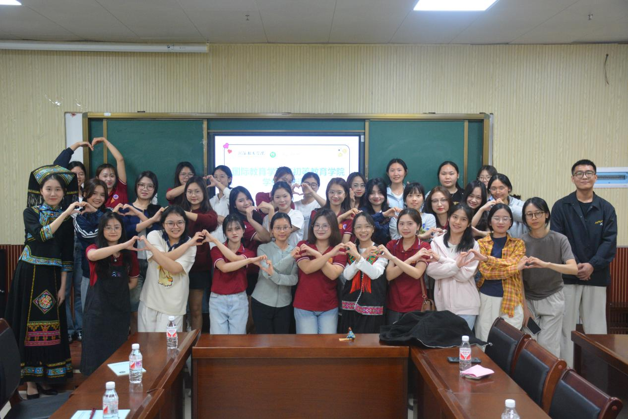 与国际教育学院在我校五合校区开展中外学生交流座谈。国际交流合作处副处长、国际教育学院副院长陈传忠,初等教育学院团委书记李欣、辅导员李露露、韦文平和70余名中外学生代表参加本次活动。