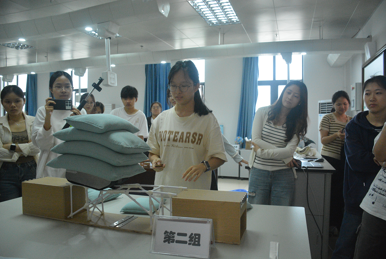此次比赛分为落体缓降和纸桥承重两个项目。开幕式上,陆以宏书记指出此次科技运动会对推动我院科学教育工作、提高我院师生科学素养和科学教育实践技能具有重要意义,激励同学们积极参与并预祝各队取得好成绩。裁判员代表陆玉泽同学、参赛选手代表李思霖同学分别在宣誓中指出将严格遵守比赛规则,认真对待比赛。接着,各参赛队伍精神饱满、分工合作展开比赛。其中,在落体缓降项目上,各参赛队伍围绕如何减缓物体降落速度,运用所学知识精心设计装置,一次次尝试、调整,不断优化方案;在纸桥承重项目上,各参赛队伍则专注于纸桥结构设计,力求用有限的纸张打造出承重能力最强的桥梁。最后,经过激烈的角逐,评选出等级奖和优秀组织奖等奖项。在闭幕式上,郭覃硕老师总结表示通过此次比赛希望同学们可以不断进行科学探索,提高发现问题、解决问题的能力。