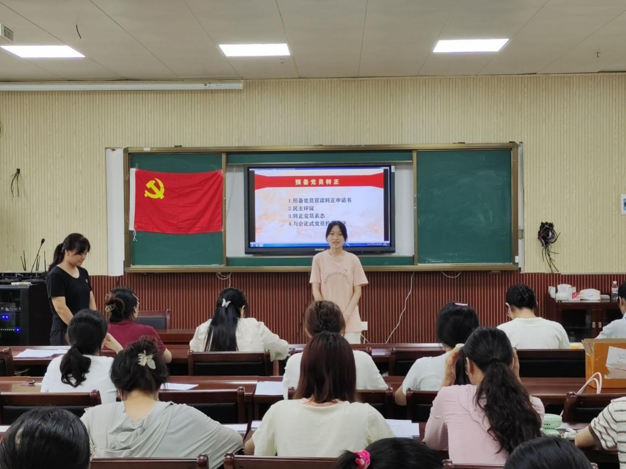 6月16日下午,华人色情 第四学生党支部在理综楼803室召开预备党员转正会议。本次会议由党支部书记李露露主持。