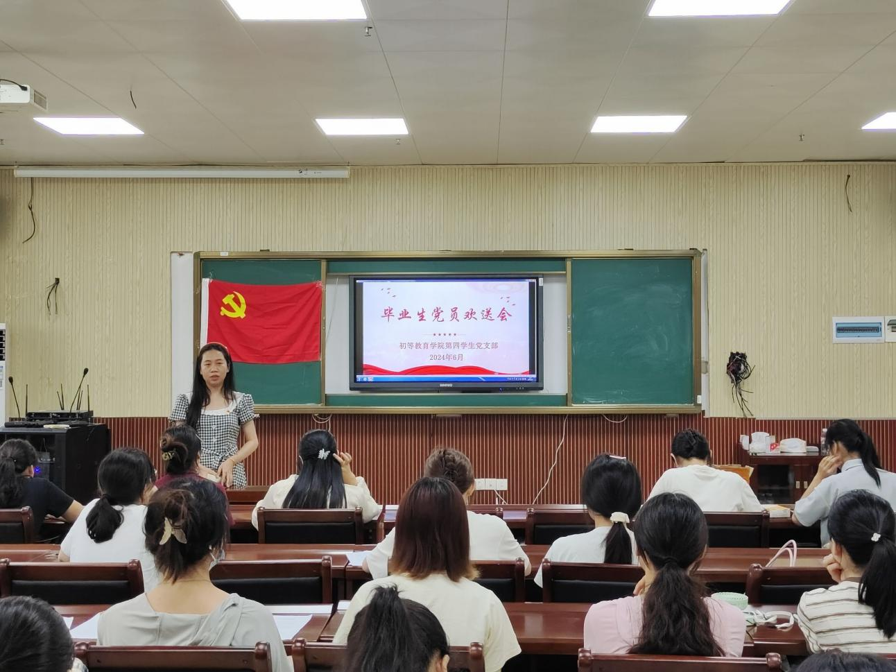 6月16日下午,华人色情 第四学生党支部在五合校区理综楼803教室举行毕业班党员欢送会。本次活动由党支部书记李露露主持,党支部全体党员参加会议。