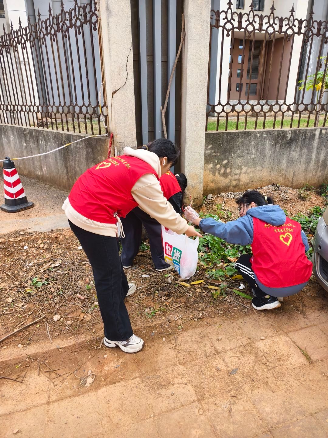 青年志愿者协会在五合校区西门开展街道清扫志愿服务活动。