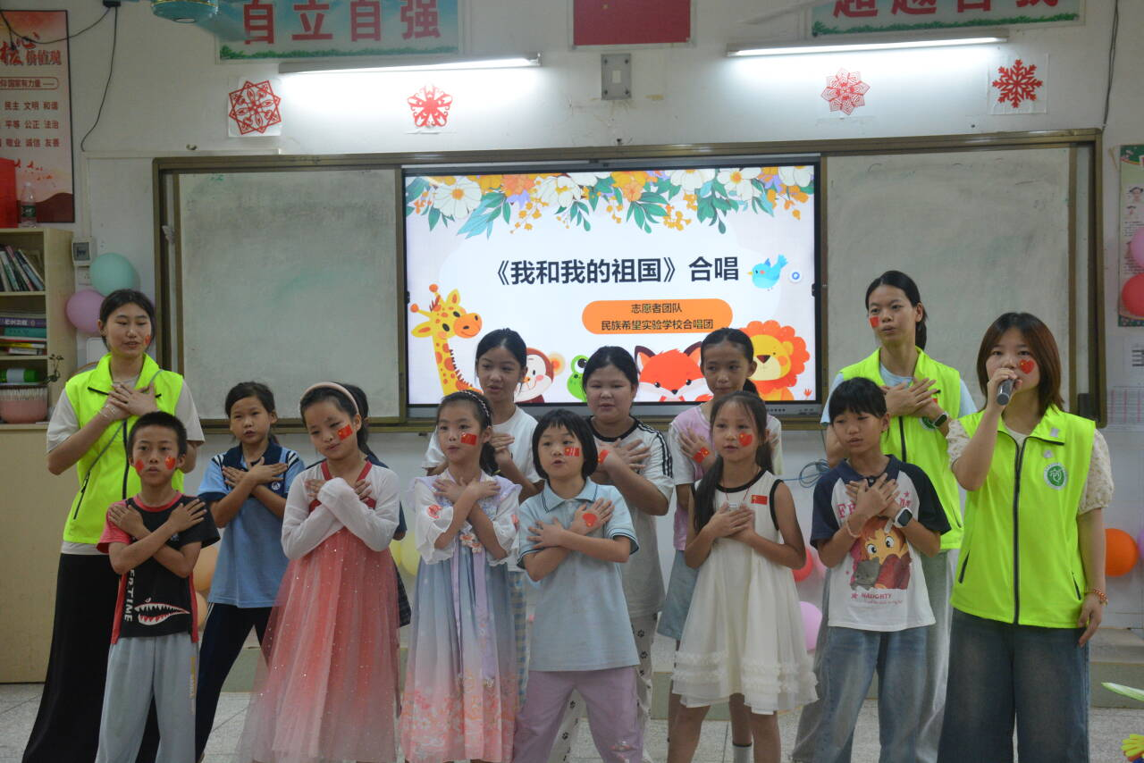 “南疆育苗”实践团在凭祥市民族希望实验学校开展“童心向党歌盛世,薪火相传颂华章”文艺汇演活动。实践团全体成员与该校学生携手登台,为师生带来了一场充满活力与温情的文化盛宴。
