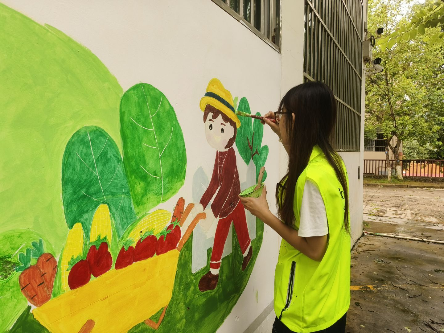 “南疆育苗”实践队在凭祥市民族希望学校开展“小手绘未来 劳动筑梦想”主题墙绘活动。