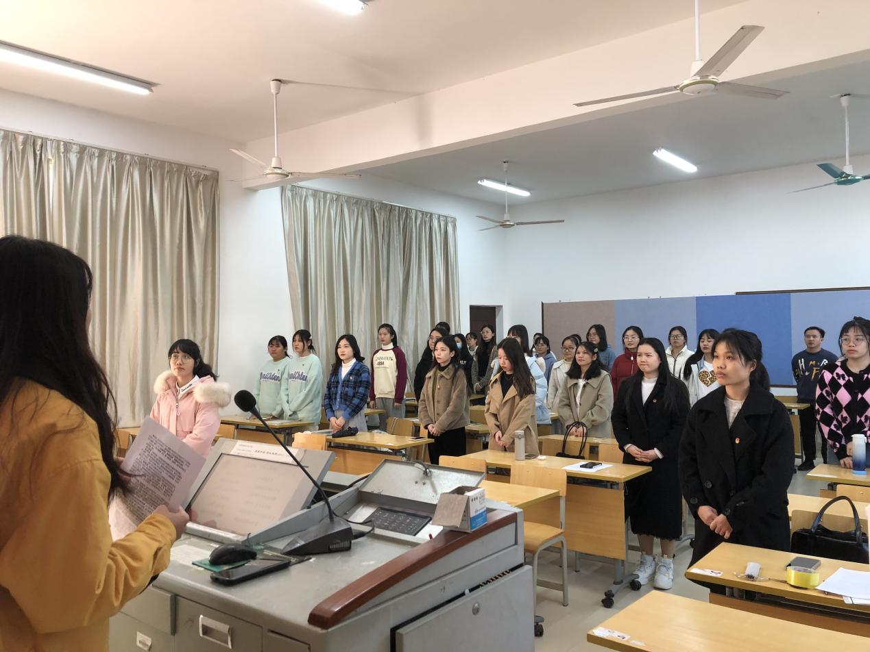 会议伊始,团支书苏斌斌首先明确了本次会议的主题和意义,介绍了此次会议的八项议程,并带领全体团员唱共青团团歌。紧接着,团支书苏斌斌汇报团支部成员组成情况与团支部今年开展“学习二十大、永远跟党走、奋进新征程”主题教育实践活动情况。接着,团支部委员、团员依次发言,交流心得体会,分析团员们的思想、学习、工作、生活等方面的不足及今后努力的方向。然后,进行团员互评与团员先进性民主测评投票。最后,班主任覃诗雅老师对此次组织生活会作总结发言,团支书苏斌斌带领全体团员重温入团誓词。