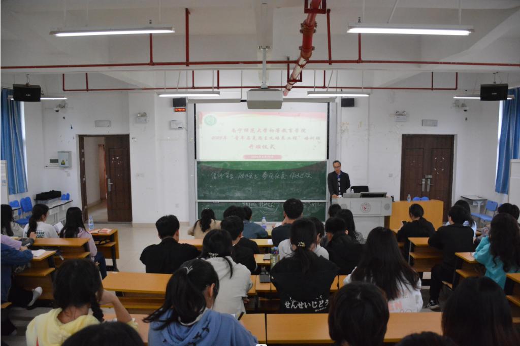 在五合校区文综楼516教室开展2023年“青年马克思主义培养工程”培训班开班仪式暨第一讲。初等教育学院党委副书记苏学权,团委书记秦晴,辅导员李欣、李露露和覃诗雅,兼职辅导员范云馨以及学生党支部、团委学生会、各社团、各班级代表参加了此次活动。