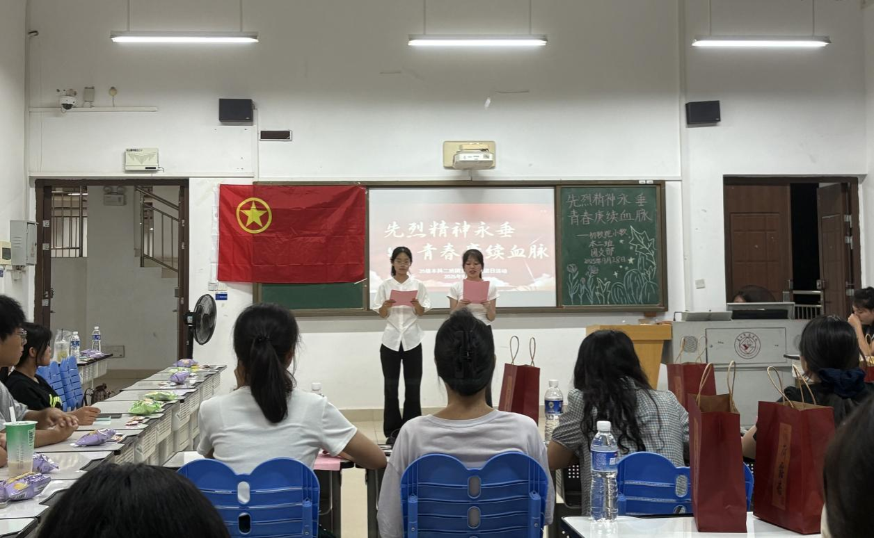 为强化班级凝聚力,引导青年学子坚定理想信念,9月28日晚,华人色情 2025级本科二班五合校区文综104室开展先烈精神永垂,青春赓续血脉”主题团课活动。