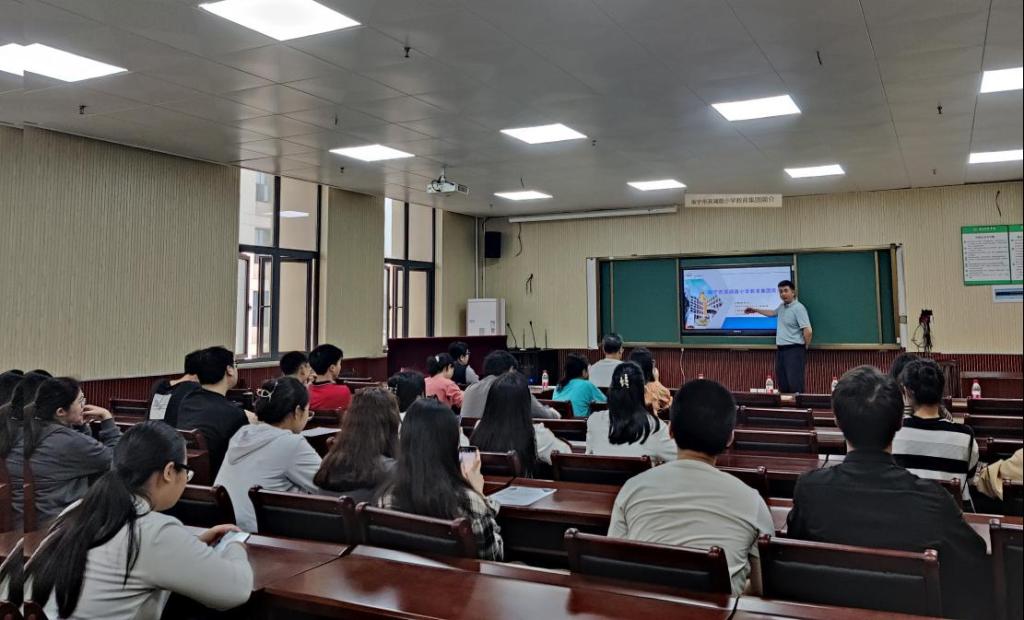 首先,滨湖路小学教育集团党委副书记胡祎向同学们介绍学校情况、福利待遇,副校长黄莉讲解小学教师成长路径、学校优势、招聘要求。互动环节,两位老师就同学们提出的问题进行解答。最后,收集毕业生就业简历、推荐书等材料,为后期组织笔试、面试做准备。