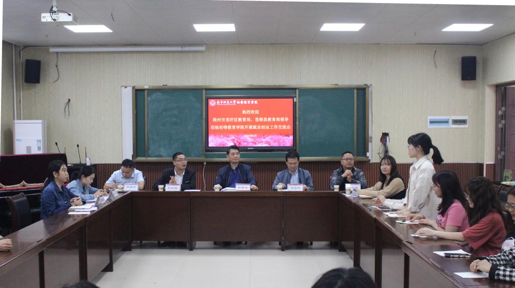 最后,彭英彪书记指出,感谢梧州市龙圩区教育局、苍梧县教育局对学院就业创业工作的支持与指导,希望接下来双方能进一步加强沟通联系,为毕业生开拓实习、就业岗位,共同助力毕业生实现高质量就业。