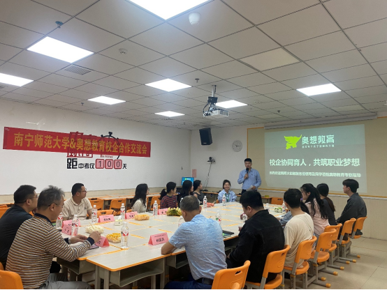 党委副书记苏学权带队赴奥想教育开展访企拓岗专项活动。奥想教育联合创始人王宇彬、首席运营官(COO)于波、人力资源总监赵光明等企业代表热情接待并参与座谈交流。学院小教系系主任林国兵、学工办谢廷建老师、覃素芳老师及有意向应聘奥想教育的毕业生代表一同参加活动。