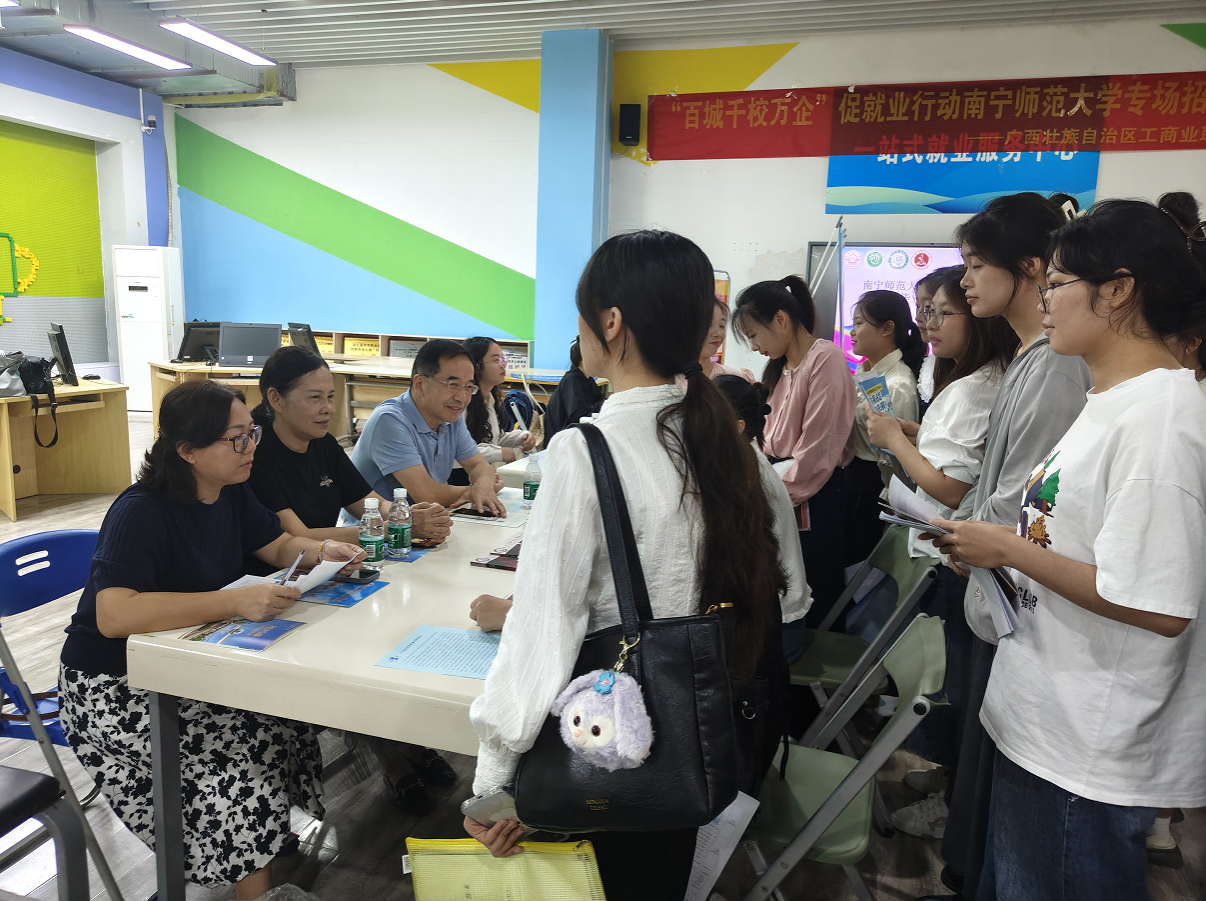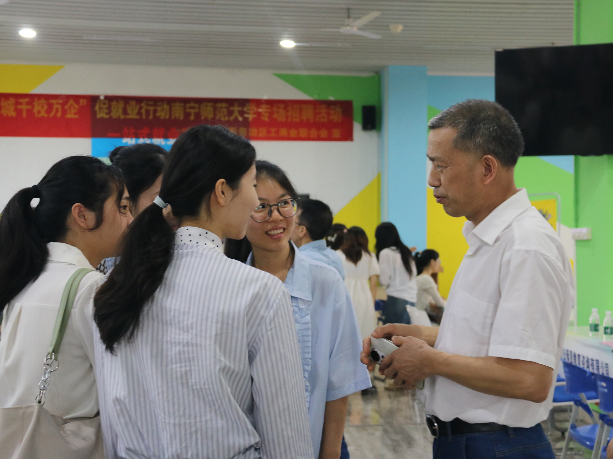 为确保双选会的安全、顺利、有序举办,学院设立了党员先锋岗,为毕业生和用人单位提供志愿服务。本次招聘会共有15家用人单位参与,包括南宁市北湖北路学校、南宁市江南区明德小学以及南宁市奥想教育创晨科技有限公司等单位,华人色情 征兵工作站也到场进行毕业生征兵工作宣传并提供咨询。现场秩序井然,同学们携带简历向用人单位咨询情况、一对一深入交流,用人单位也热情主动地向同学们介绍自身定位和特色,积极招揽人才。